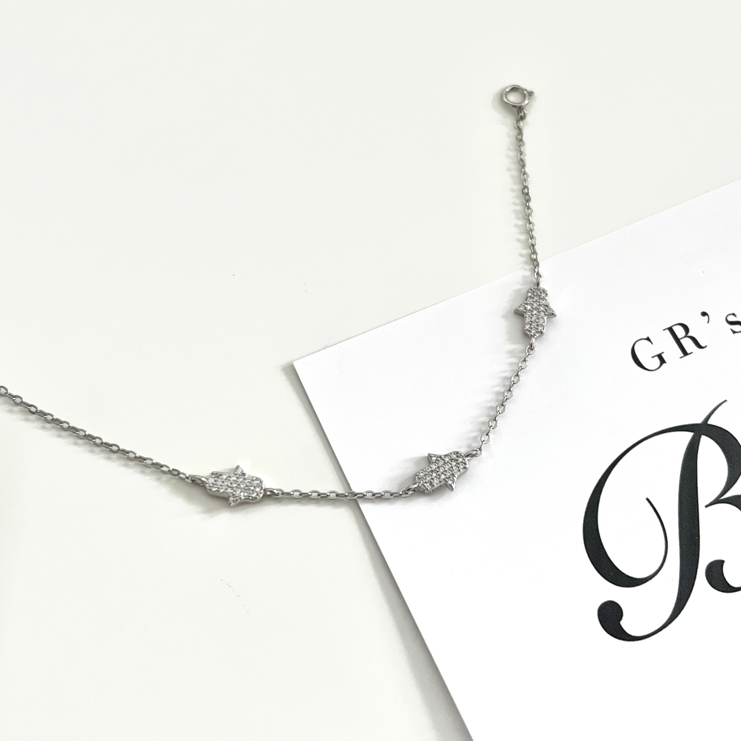 Express your style with this beautiful 925 sterling silver bracelet. The triple hand of hamsa design is set with eye-catching, sparkling cubic zirconia stones.